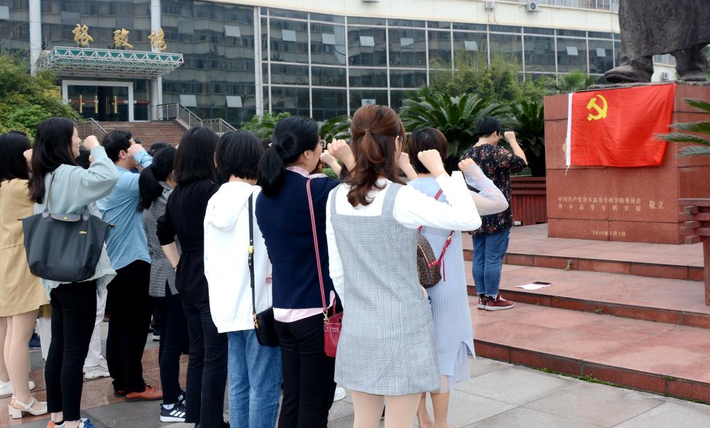 一、重温一遍入党誓词。2021年3月31日,外国语学院全体党员们在学校红色文化育人广场面向毛主席铜像、面向党旗、佩戴党徽,高举右拳,重读一遍入党誓词,再次向党作出了庄严承诺,表达对党忠诚、积极工作的决心和信心。