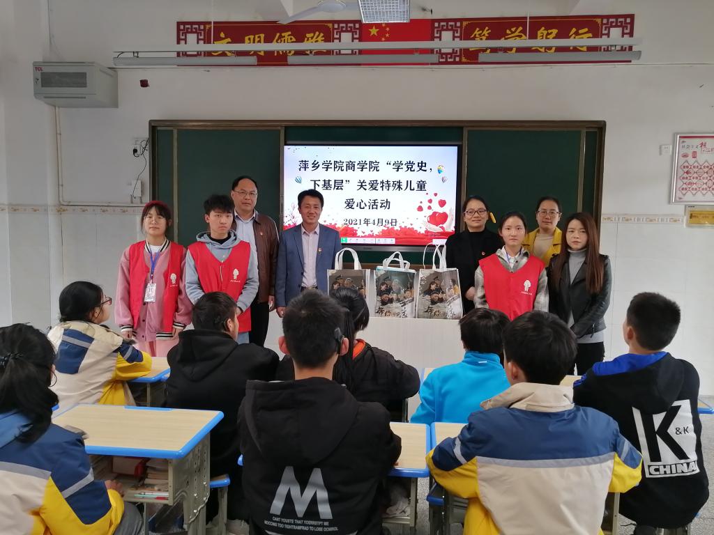 2021年4月9日下午,商学院党总支书记曾敏一行赴芦溪特校组织开展“学党史,下基层,关爱特殊儿童”志愿服务活动,实地考察萍乡学院义工团志愿服务定点合作单位,现场完成特殊儿童的微心愿。商学院及义工团师生代表共计10人参加此次活动。