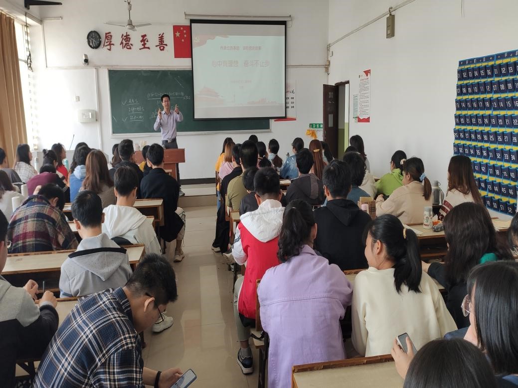 辅导员危亮老师给同学们分享的主题为“心中有理想 奋斗不止步”,讲述了血雨腥风的革命岁月里赵一曼同志的英雄事迹,讲述了筚路蓝缕的建设时期铁人王进喜的模范事迹,在春潮涌动的改革年代华西村老书记吴仁宝的事迹,讲述了在砥砺奋进的新时代,老英雄张富清同志的事迹。同学们懂得了共同的理想信念,让一代代的共产党人凝聚起来,不畏艰难、不怕牺牲而坚守初心的信念和意志,支撑着中国共产党一路走来,走到今天,走向未来。
