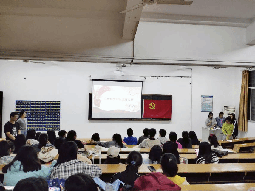 为庆祝中国共产党成立100周年、萍乡学院建校80周年,扎实推进党史校史学习教育走实走心,为党史校史学习教育营造浓厚学习氛围,2021年5月21日晚,学前教育学院学生党支部在多维楼一楼阶梯教室举办党史校史知识竞赛,此次竞赛由刘君和刘文原两位同志组织,学前教育学院学生党支部成员以及20级学生代表参与竞赛。